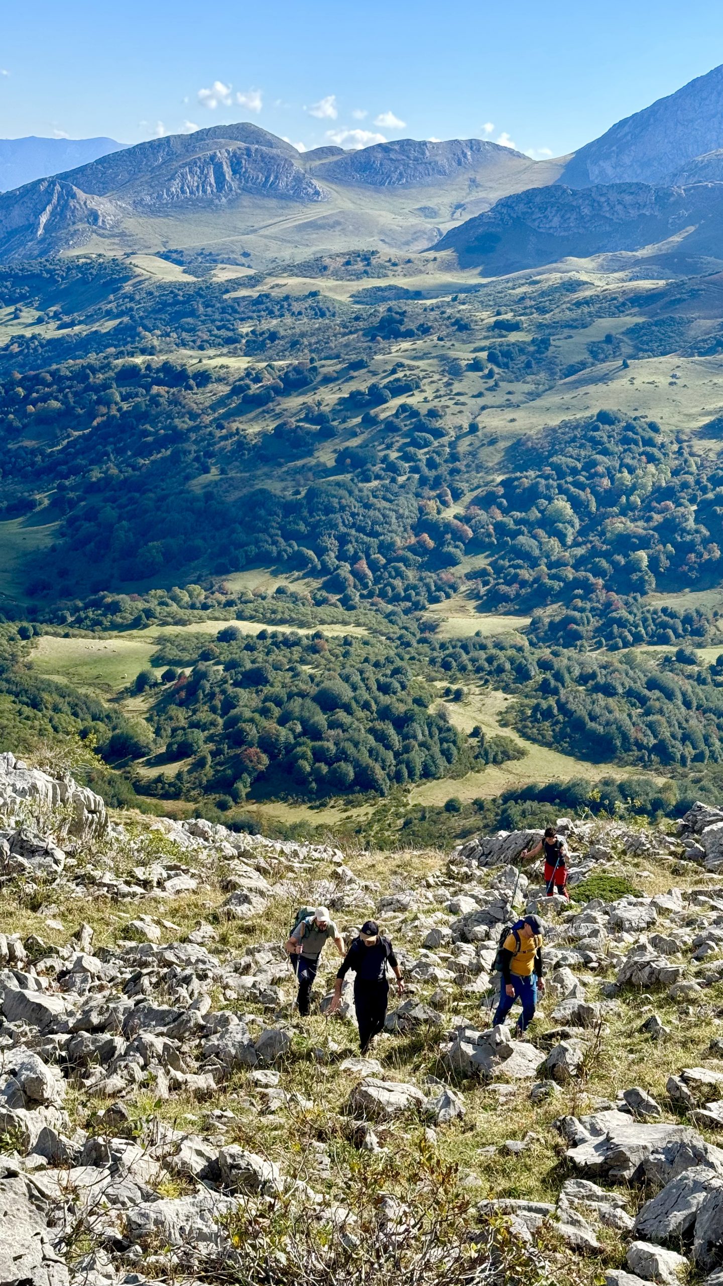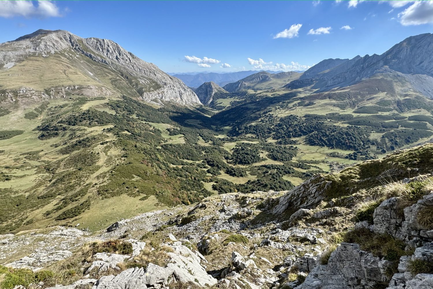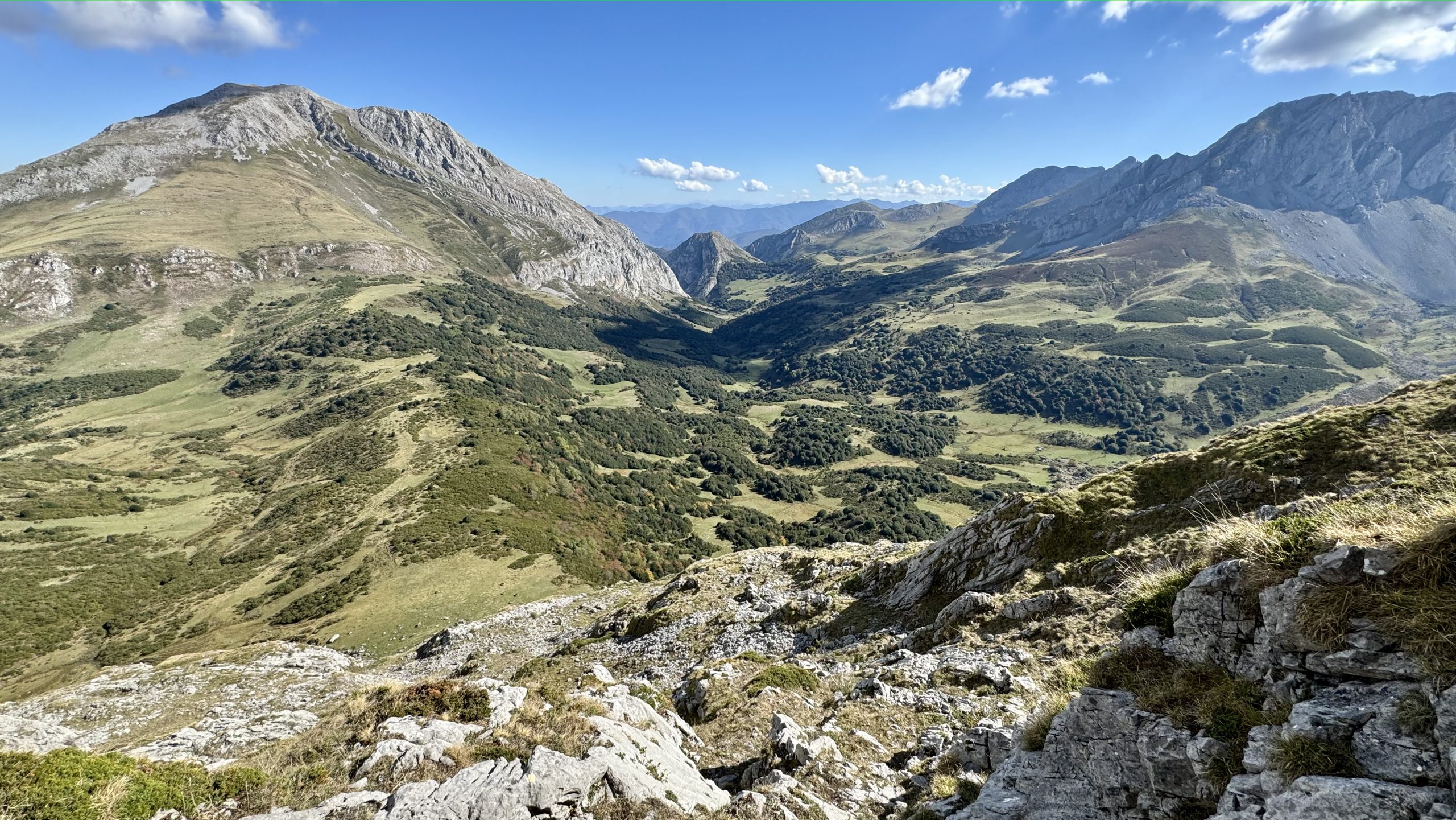 Partimos desde el concejo de Quirós, en plena montaña central asturiana, para adentrarnos en un terreno que mezcla zonas de pasto de altura, tramos de pedrera y crestas de roca caliza. La subida a los Huertos incluye alguna trepada sencilla, sin dificultades técnicas pero que requiere seguridad en terreno de alta montaña.