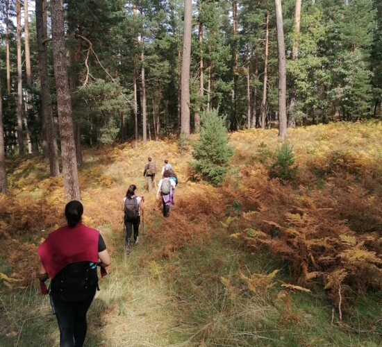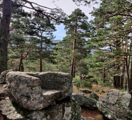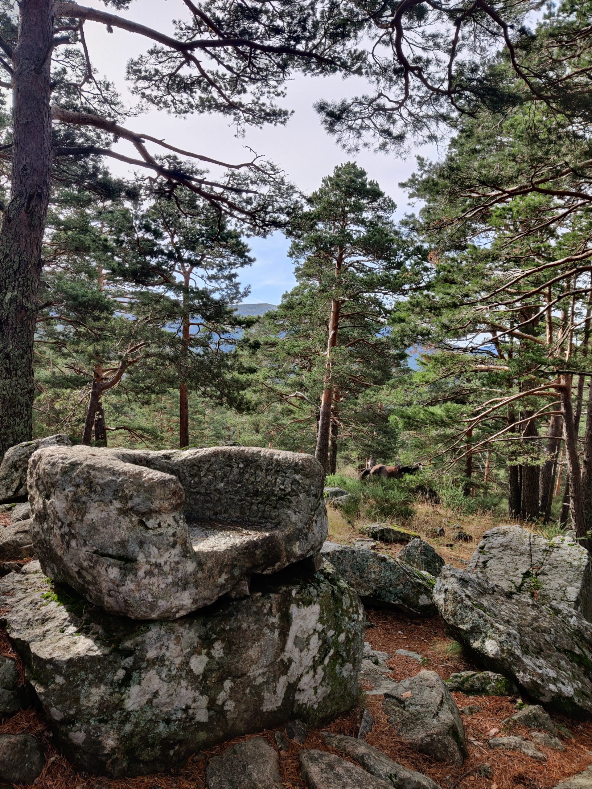 Valsaín, situado junto al Real Sitio de La Granja de San Ildefonso, conserva un paisaje donde conviven siglos de aprovechamiento maderero sostenible y un entorno natural de enorme valor. El itinerario nos llevará por su majestuoso pinar y por un robledal encantador, entre historia y naturaleza: trincheras y búnkeres de la Guerra Civil, una roca con forma de cueva donde vivió un monje durante años, una pequeña cascada para refrescarnos y la emblemática Silla del Rey, mandada construir por Francisco de Asís para meditar y contemplar el entorno de La Granja.