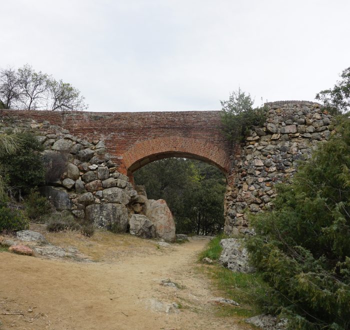 Este afluente del Alberche nace de la unión de varios arroyos y discurre por un estrecho valle encajonado entre cerros y laderas rocosas, creando paisajes salvajes y solitarios. Nuestra ruta circular parte y termina en Navalagamella, y nos llevará por enclaves tan singulares como la Colada del Puente del Hoyo, el abrevadero de Vahondillo y los alrededores del pueblo, donde aún se conservan restos de fortificaciones de la Guerra Civil (1936-1939), incluidos búnkeres y estructuras defensivas parcialmente derruidas.
